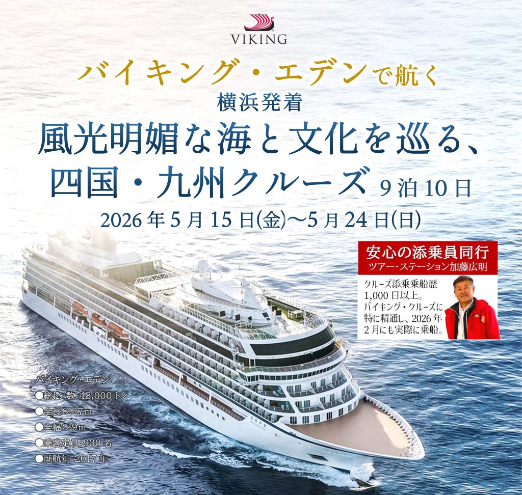 世界的に評価の高いラグジュアリー客船「バイキング・エデン」で、日本の美しい海と文化を巡る特別クルーズが登場しました。