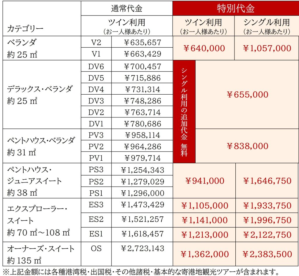 今回のクルーズでは ラストチャンスキャンペーン(特別価格) を適用しています。